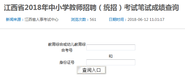 2018江西中小学教师招聘笔试成绩查询入口6.12开通