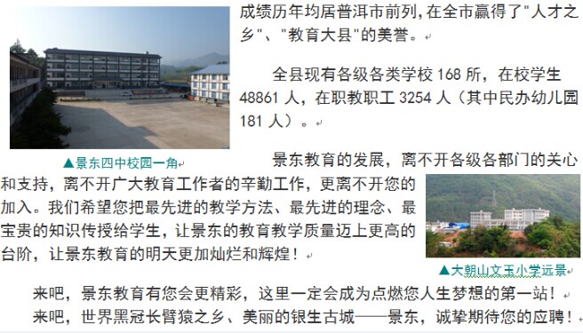 普洱市景东县2015年特岗教师招聘宣传