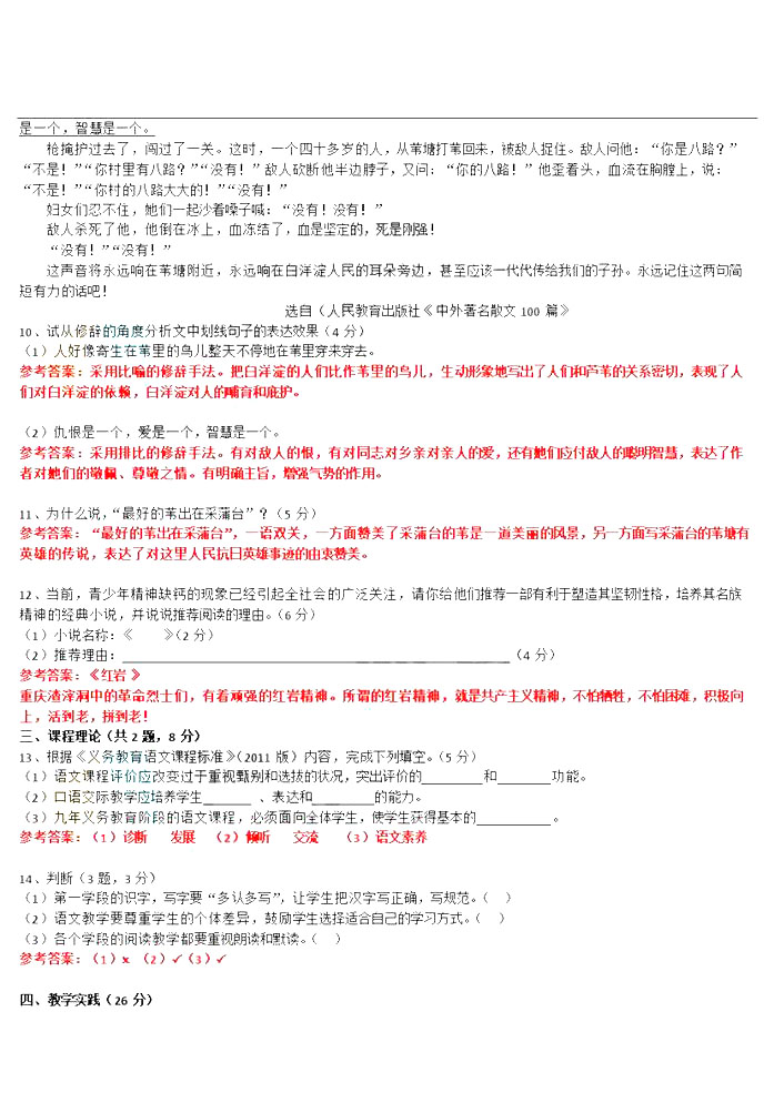 教师招聘语文考试试题_2013江西教师招聘考试小学语文真题及答案 Word版(4)