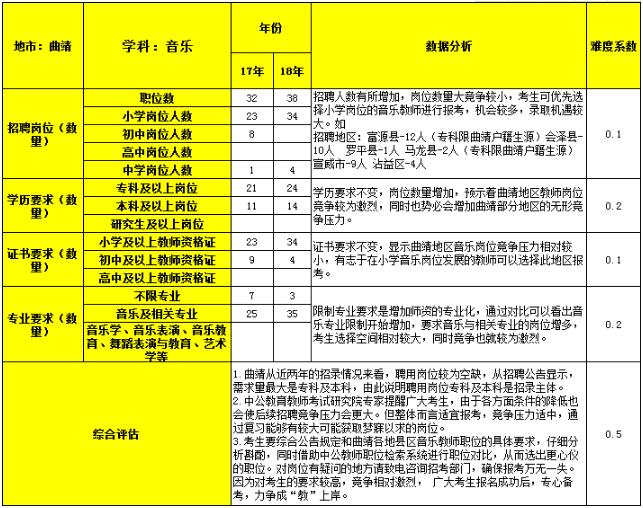 2018年云南曲靖市特岗教师 音乐 学科职位分析