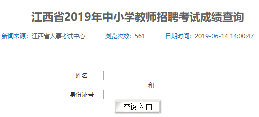 2019年江西中小学教师招聘考试成绩查询入口开通