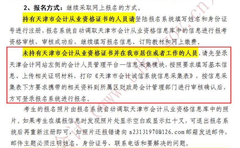 注意 未取得从业证需进行信息采集方能报名天津初级会计