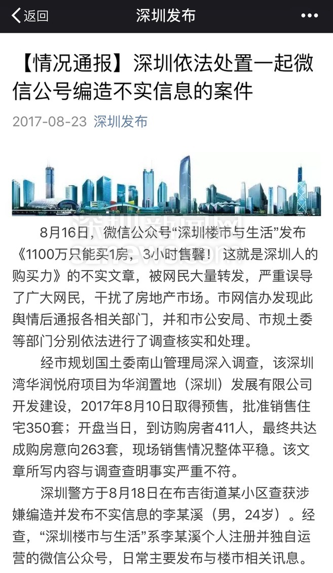 24岁男子编造 深圳顶级豪宅遭千人排队抢光 被行拘