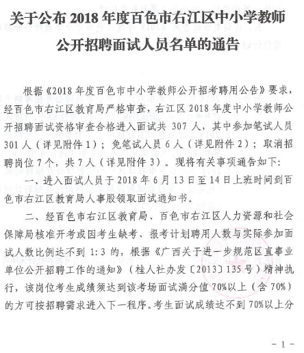 百色右江区 崇左天等县教招复征面试资格审查公告