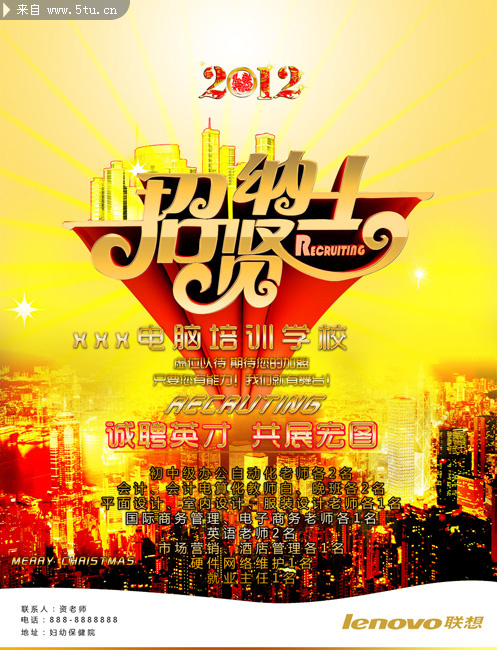 招贤纳士艺术字 电脑培训学校招聘海报