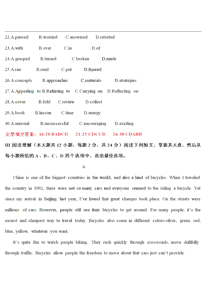 2017江西教师招聘考试初中英语真题及答案 Word版