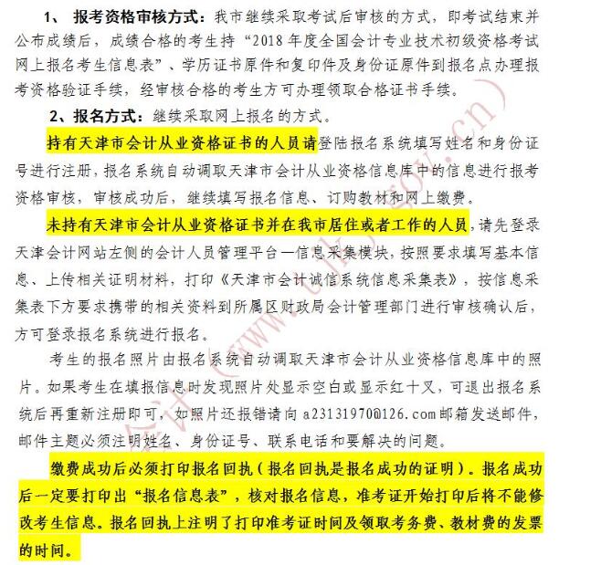 天津会计网 2018年天津初级会计职称考试报名须知