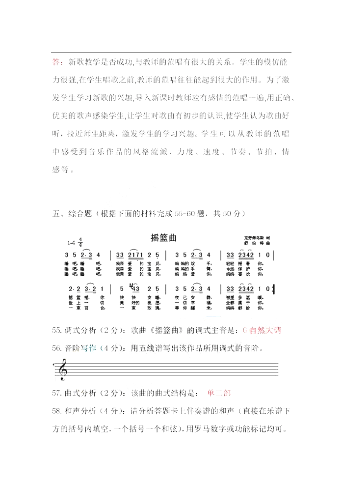 2019小学音乐教师招聘考试模拟试卷答案 五套