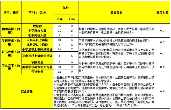 2018年云南曲靖市特岗教师 美术 学科职位分析