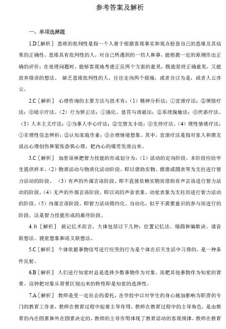 2016年广东粤东西北事业单位教师公开招聘考试真题 Word版